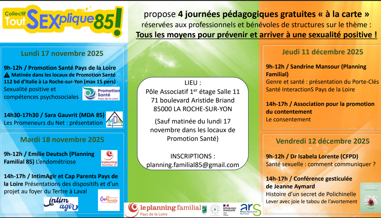 👉 Promotion Santé Pays de la Loire propose une formation "Santé Sexuelle des jeunes en situation de handicap" à Angers sur deux jours.
